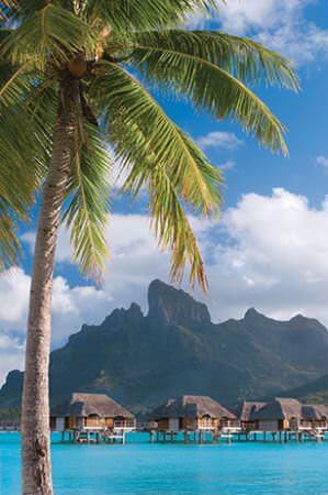 Set upon Bora Bora’s surrounding coral atoll, away from the bustle of its mainland, the Resort is a vast tropical grove, replete with coconut palms and pandanus trees. Meandering channels of pure turquoise lead to the property’s main beach or to smaller lagoons, creating secluded private beaches waiting to be discovered. Every vista is breathtaking, and all have been incorporated into the design of the Resort: views of the open water and its vast sky contrast with the lush green of the island’s mainland, capped by the towering monolithic peak of Mount Otemanu and the domed summit of Mount Pahia.